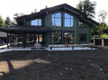 Фундамент - плита Стены - клееный брус 240(h) х 200 Крыша - черепица окна - деревянные евро лиственница с внутренней отделкой