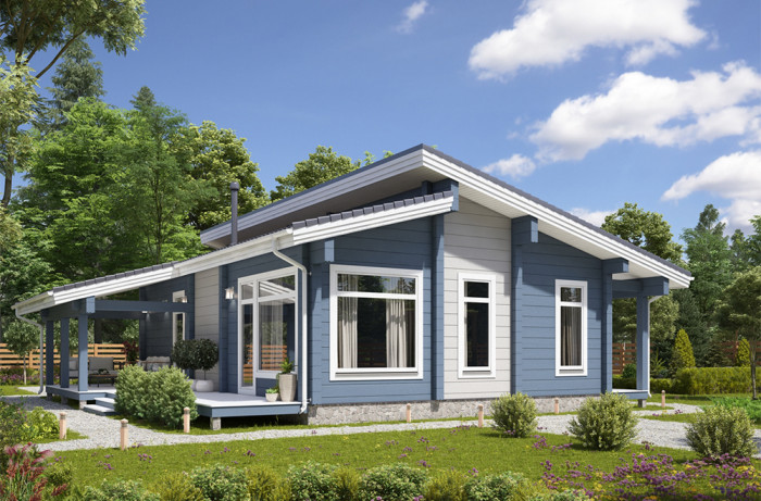 У дома, по проекту два входа, один летний в кухню-гостиную через большую террасу, второй зимний с обратной стороны дома в прихожу.