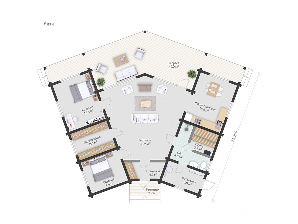 Дом по проекту "Модерн" идеально подойдет для небольшой семьи.